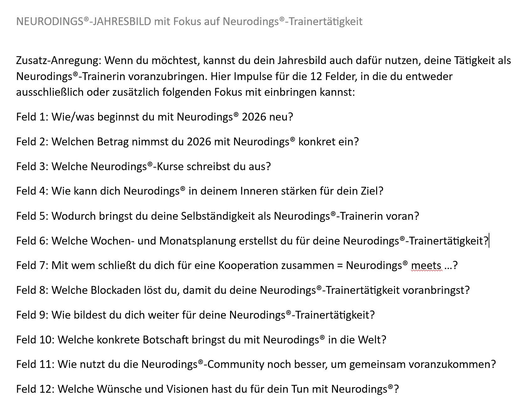 WER DEN FOKUS SPEZIELL AUF DIE NEURODINGS®-TRAINERTÄTIGKEIT AUSRICHTEN WILL - HIER IMPULSE DAZU: